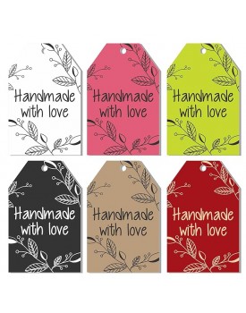SVM CRAFT® Handmade with Love Tags, 2.8" (100-Count), with String - Wedding Favors, Events, Birthdays-Small Business Label Tags for Handmade Gifts