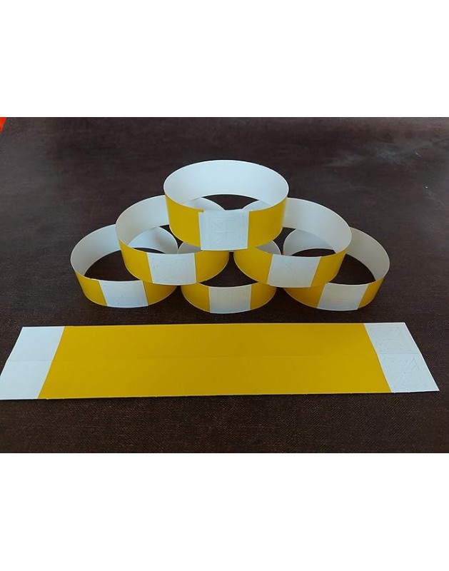Paper Combines Wristband for Events/Seminars/Party with Adhesive Closure-1 inch Wide and 10 inch Long Pack of-100(Yellow, 100)